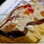 5. Tritare grossolanamente i canditi. In una ciotola montare la panna con lo zucchero e tenerne da parte 3 cucchiai per la decorazione; aggiungere alla panna montata rimasta i frutti canditi tritati.