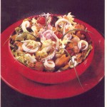 - Pulire i calamari, lasciare a bagno sotto l'acqua corrente per una mezz'ora cozze e vongole per eliminare la sabbia. Far cuocere i calamari in acqua fredda, con il dado, per circa 10 minuti. Scolarli e lasciarli raffreddare, poi tagliarli sottili e metterli da parte. Far saltare cozze e vongole in padella a fuoco vivo con il vino bianco finchè si saranno aperte. Eliminare i gusci, filtrare il liquido di cottura e farlo ridurre della metà .
