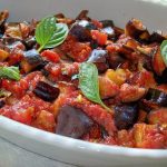 - Preparare una salsa con i pomodori, l’olio, l’aglio, il sale e il pepe. Quando la salsetta sarà ben cotta, aggiungete il basilico e le melanzane fritte, fate cuocere per 5 minuti mescolando.